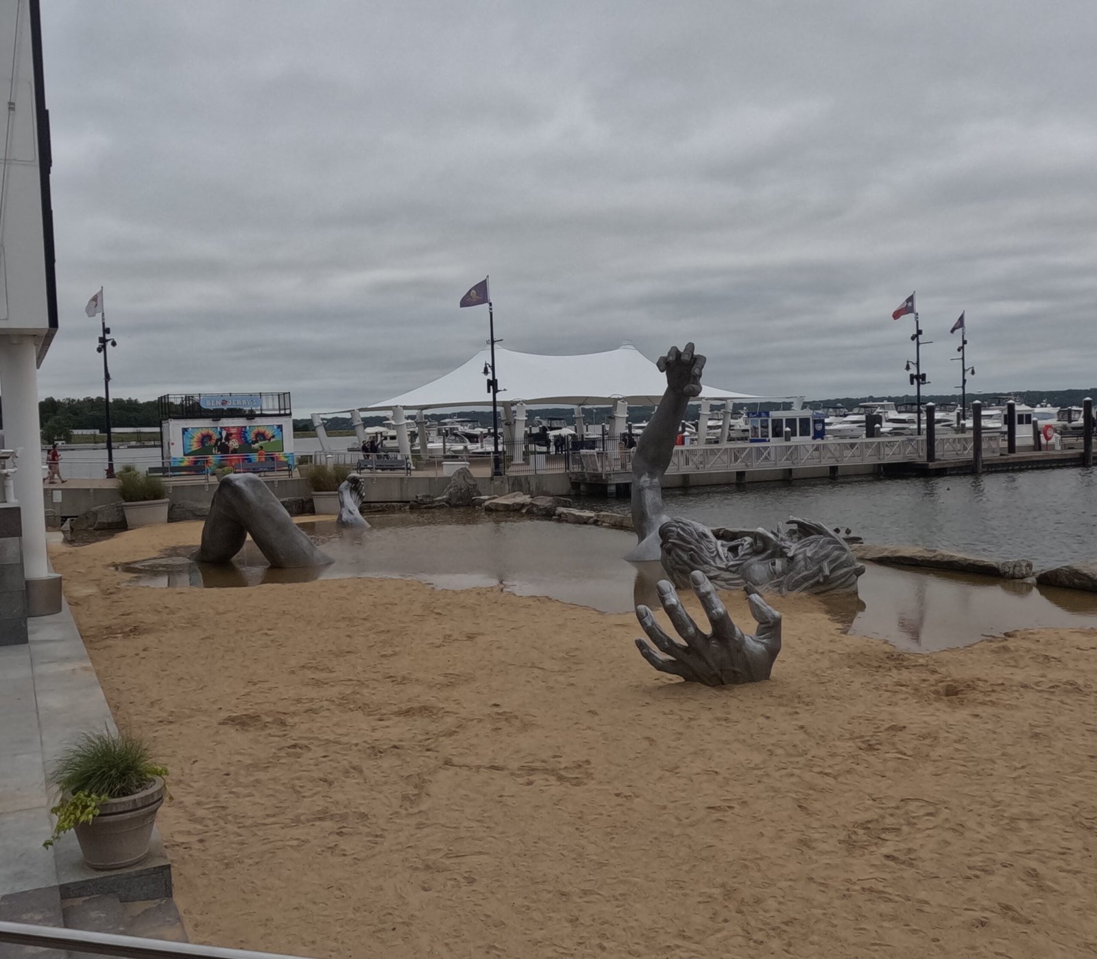 The Awakening (1980) is a 72-foot statue by J. Seward Johnson, Jr. that depicts a giant embedded in the earth, struggling to free himself. It is located on a man-made beach at National Harbor in Maryland, United States, just outside Washington, D.C.
