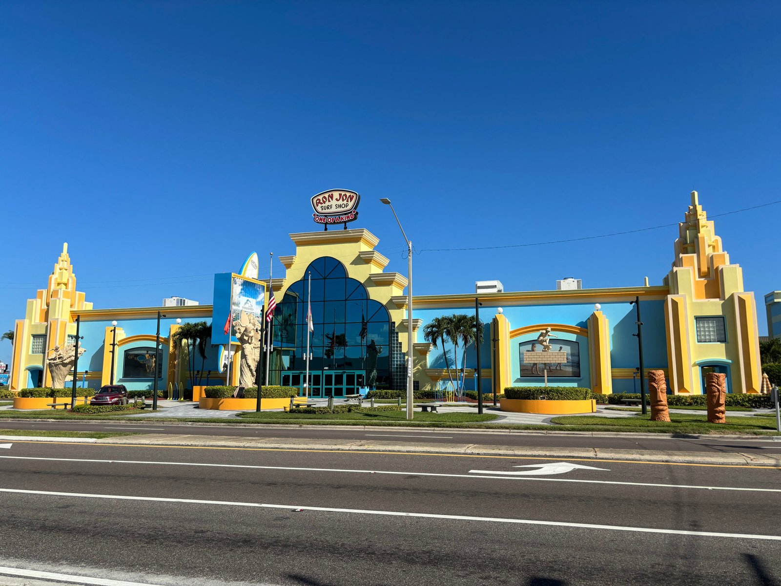 Claimed to be the largest surf shop in the world, the Ron Jon surf shop dominates access to Coco Beach, Florida, Located just south of Port Canaveral.