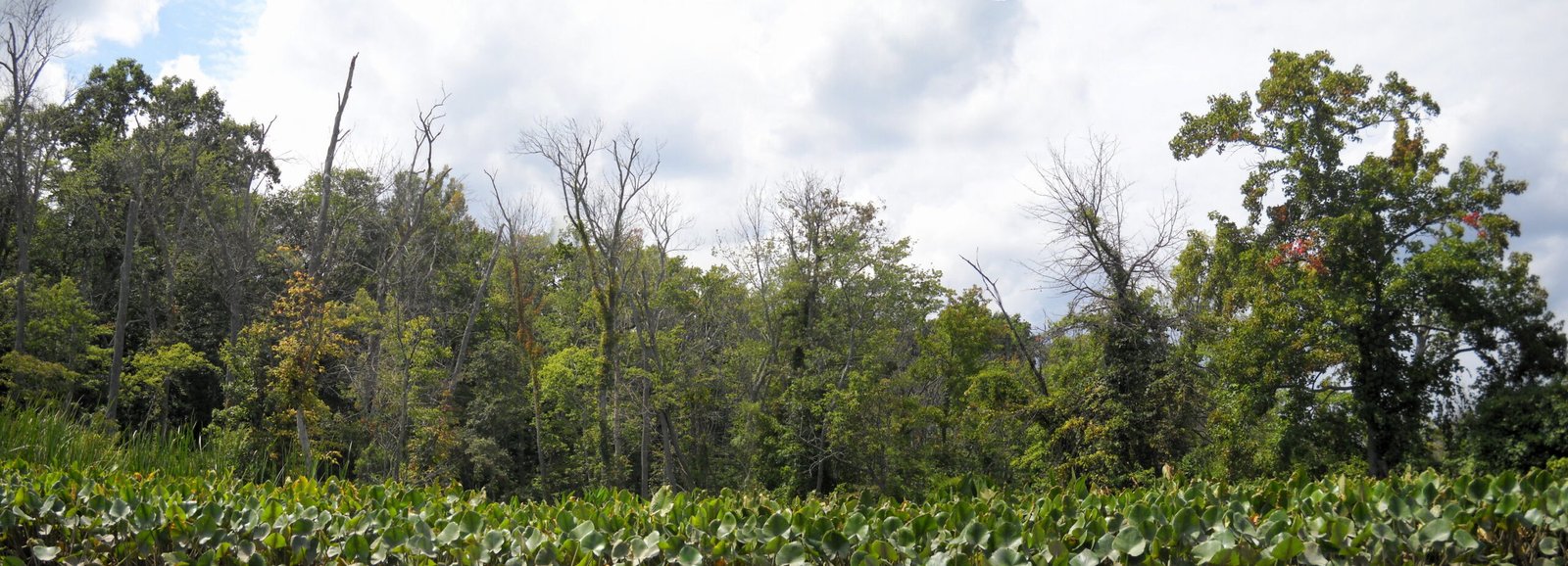 A panoramic image of wetlands inside Featherstone National Wildlife Refuge, Virginia, near Occoquan bay. This refuge is only accessible by non-powered watercraft, and the creek where this photo was taken is mostly uncovered during low tide.