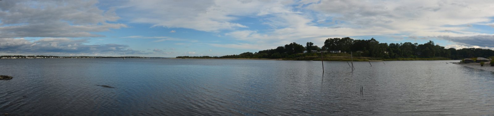 Panoramic view of the lower Providence River and Narragansett Bay at Gaspee Point, Rhode Island.