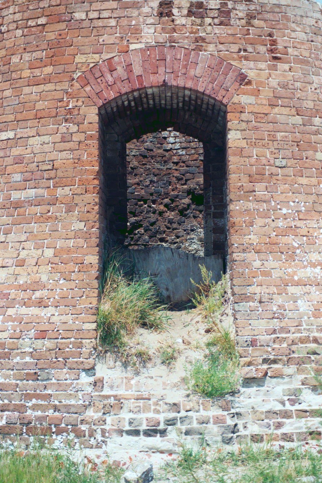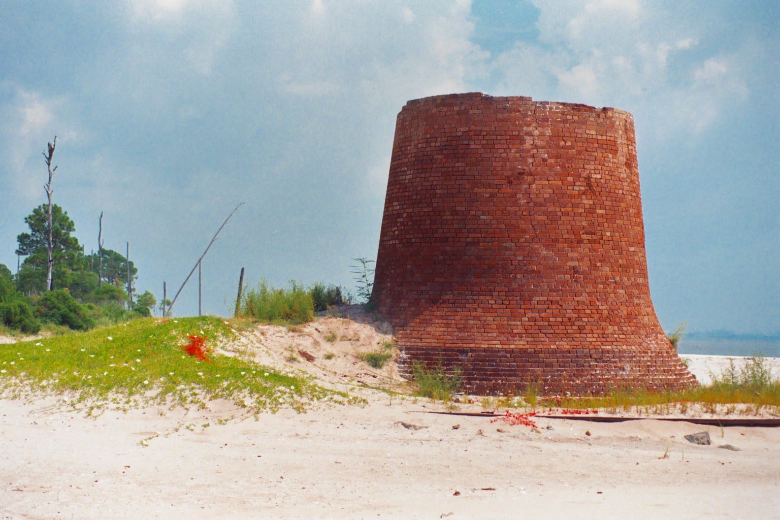 Old lighthouse on Round Island off-shore from Pascagoula Mississippi. This photo was taken in September, 2004. After hurricane Katrina in August, 2005 there was nothing of this structure left.