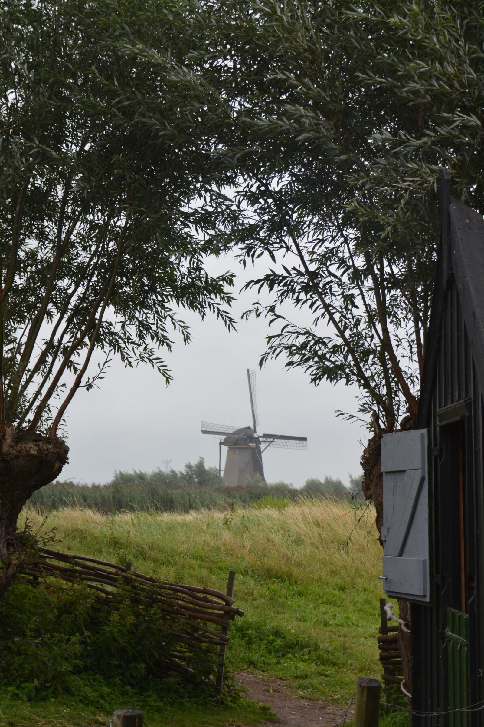 Looking across the canal at a windmill used to provide water management of the plodder.