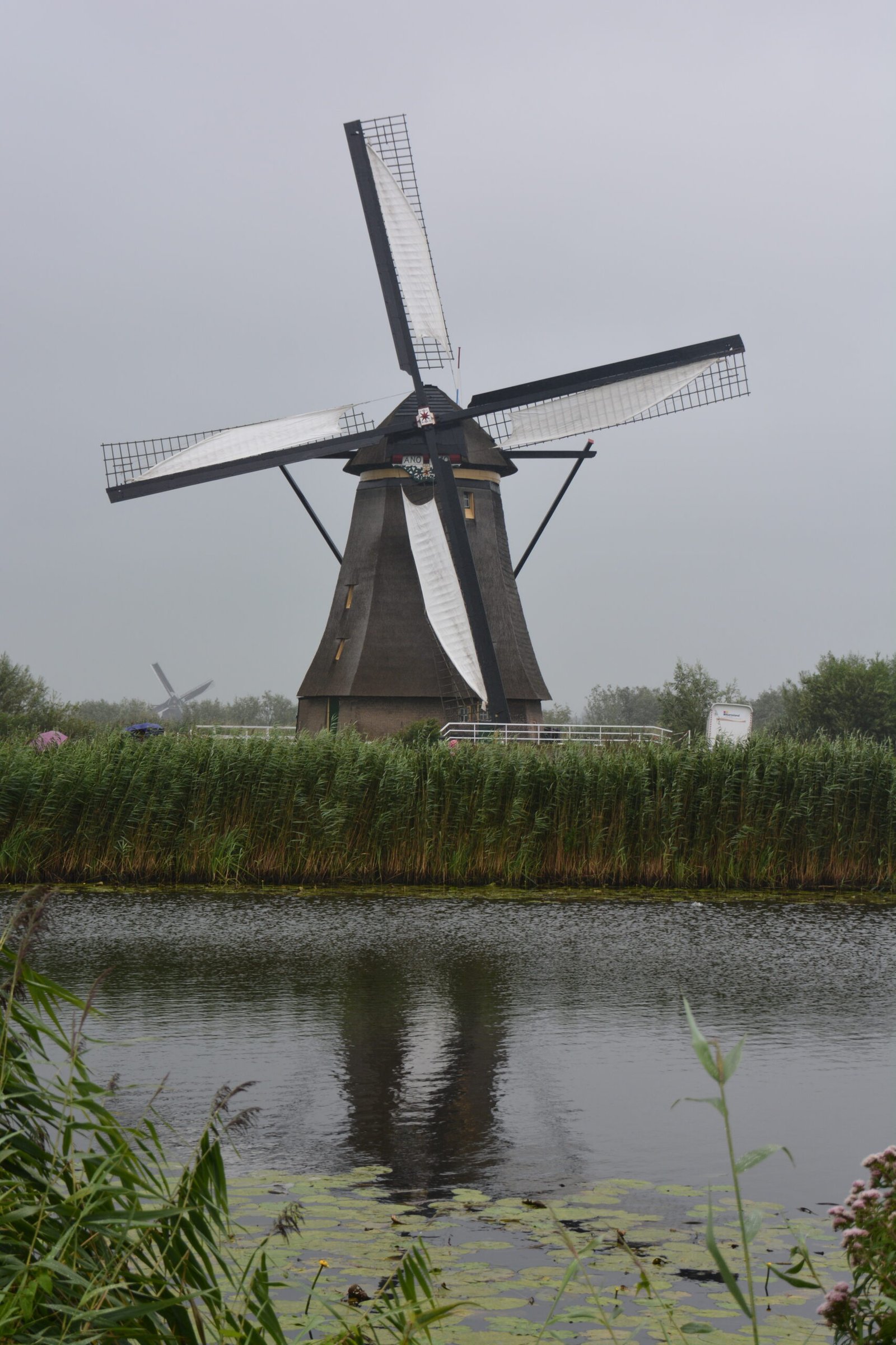 Looking across the canal at one of the Kinderdijk windmills guarding it's plodder